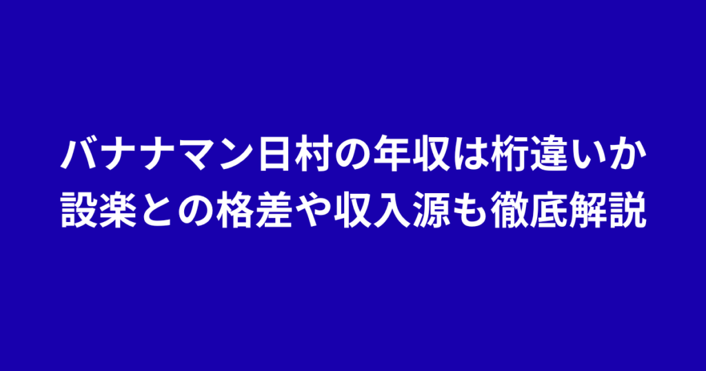 バナナマン日村の年収は桁違いか?設楽との格差や収入源も徹底解説!