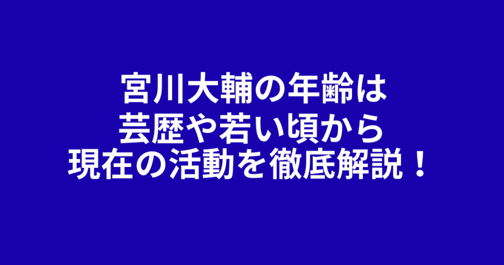 お笑い芸人として知られる宮川大輔さん。 テレビで見ない日はないほど、幅広く活躍していますよね。 そんな宮川大輔さんの年齢や芸歴が気になる方も多いのではないでしょうか? また、若い頃からどのような活動をしてきたのか、現在はどんな活動をしている... -