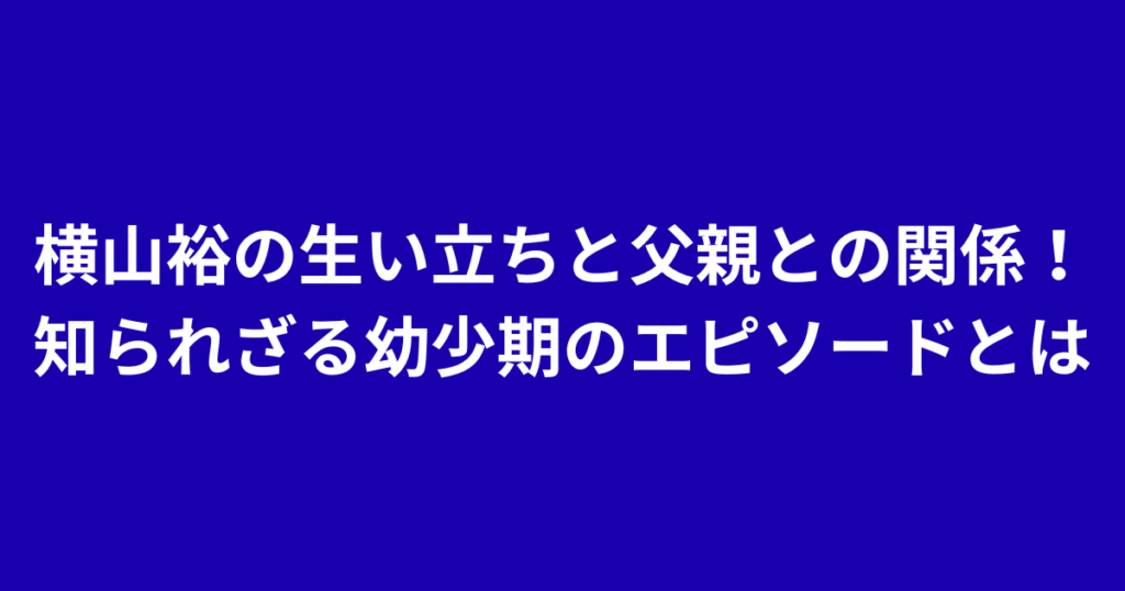 横山裕の生い立ちと父親との関係!知られざる幼少期のエピソードとは?