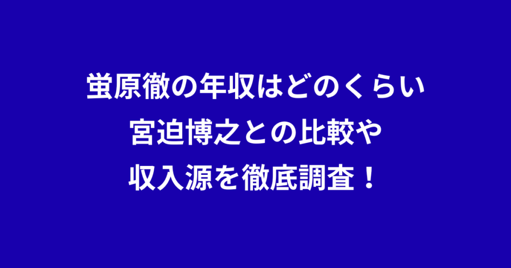 現在はMCとして人気を集める蛍原徹さん。 その実力と知名度から、一般人からは遠く離れた高額年収を得ています。 さらに、元相方である宮迫博之さんとの年収比較や、蛍原さんの主な収入源についても徹底解説していきます。 蛍原徹の年収はどのくらい? 宮... -