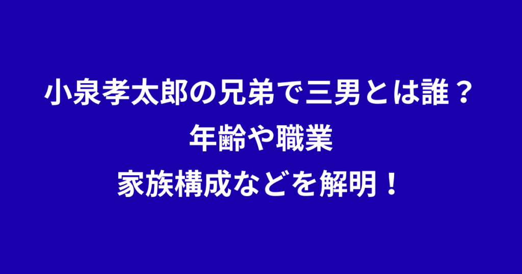 俳優として活躍する小泉孝太郎さん。 政治家として知られる小泉進次郎さん。 この二人の兄弟には、実は三男がいることをご存知でしょうか? メディアにはほとんど登場しないため、その存在を知らない方も多いかもしれません。 そこで今回は、 小泉孝太郎さ... -