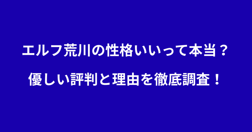 エルフ荒川の性格いいって本当?優しい評判と理由を徹底調査!