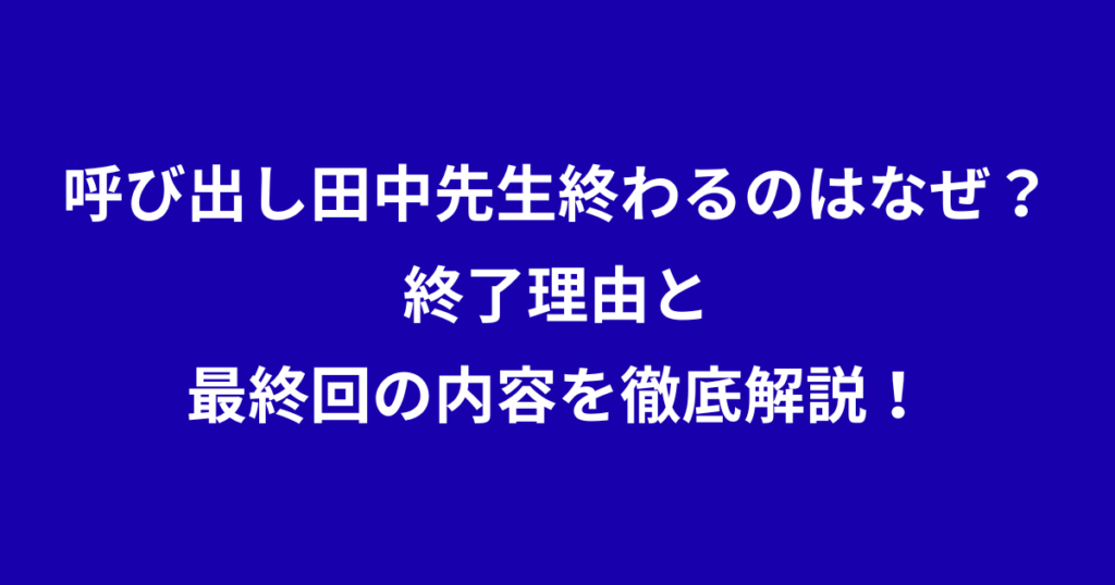 呼び出し田中先生終わるのはなぜ?終了理由と最終回の内容を徹底解説!