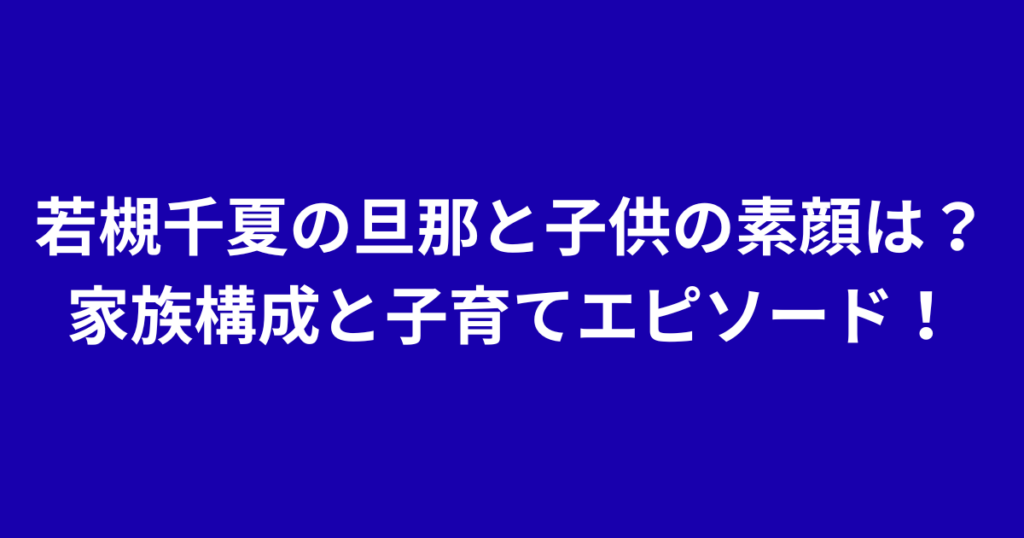 タレントとして活躍する若槻千夏さん。 その鋭いツッコミと独特な雰囲気で多くのファンを魅了しています。 そこで今回は、 若槻千夏さんの家族に焦点を当て、旦那さんや子供たちの素顔、家族構成、そして興味深い子育てエピソードについてご紹介します。 ... -