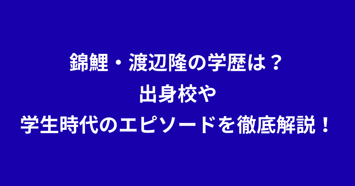 今回は、錦鯉・渡辺隆さんの学歴や出身校や、学生時代と、その後のエピソードについて詳しく調査しました。