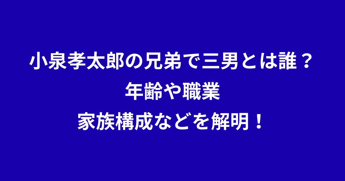 今回は、小泉孝太郎さんの三男の兄弟について、年齢や職業、家族構成などをご紹介しました。