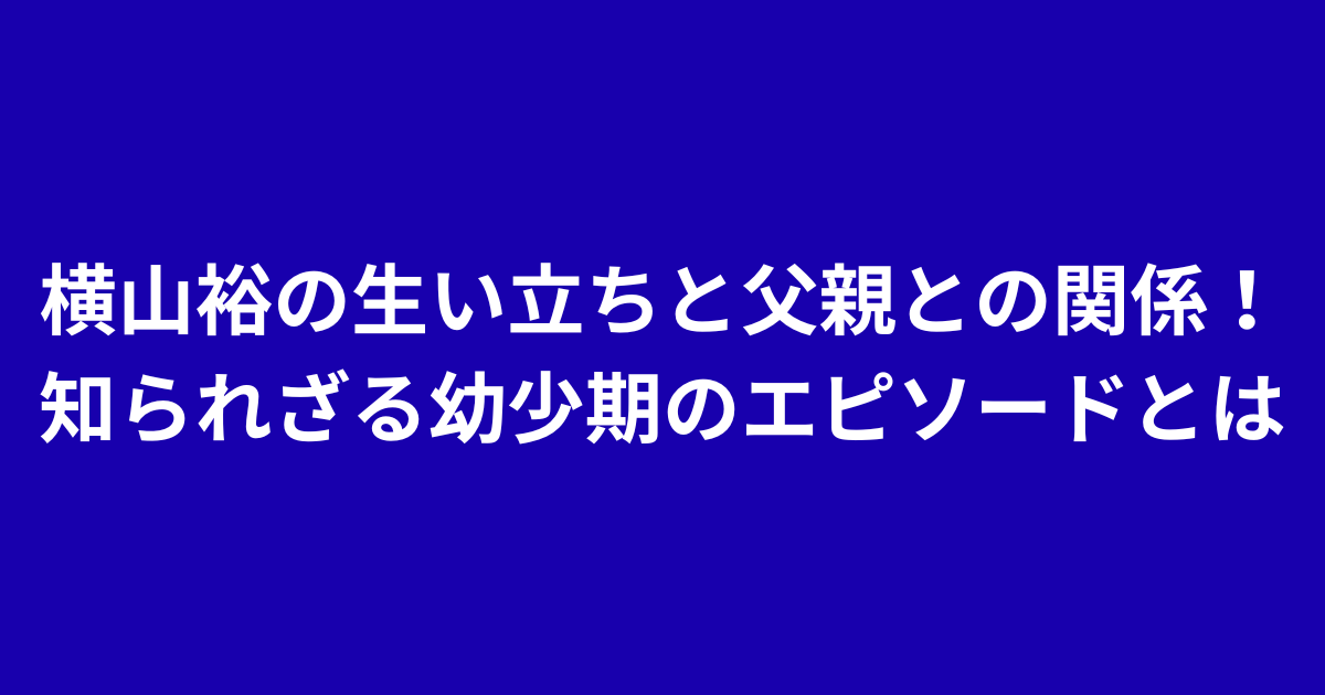これまでの、横山裕さんの壮絶な生い立ちと、父親たちとの複雑な関係性を、詳しく見ていきます。